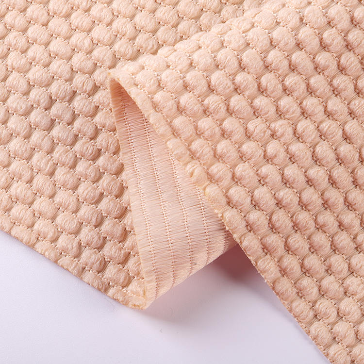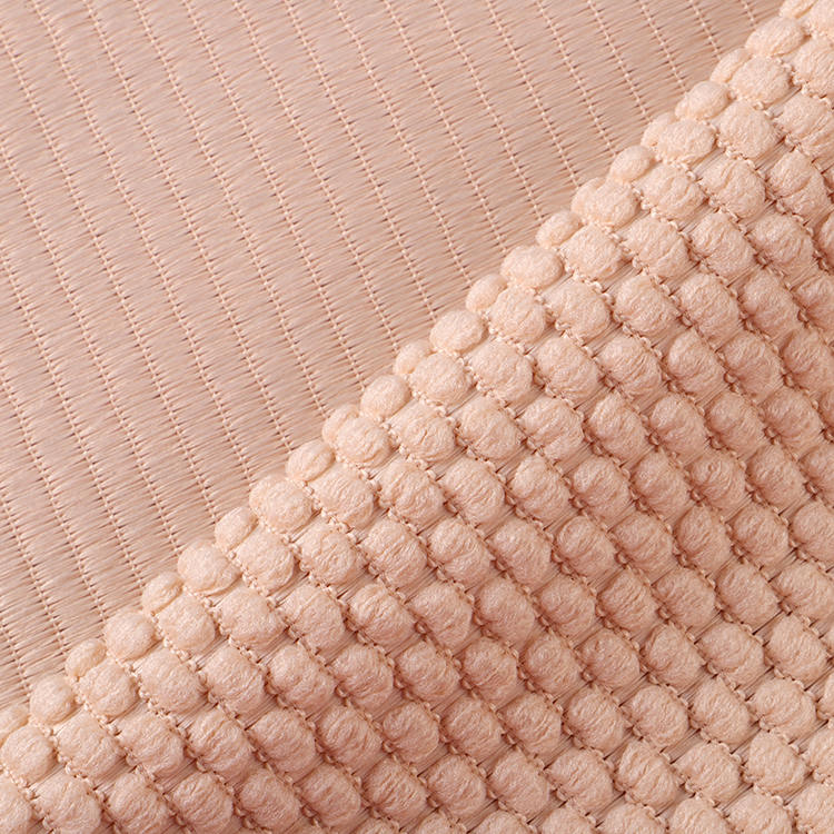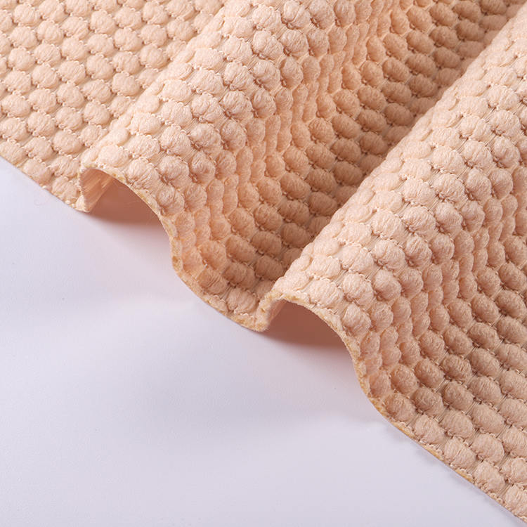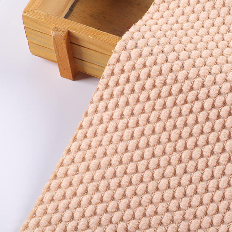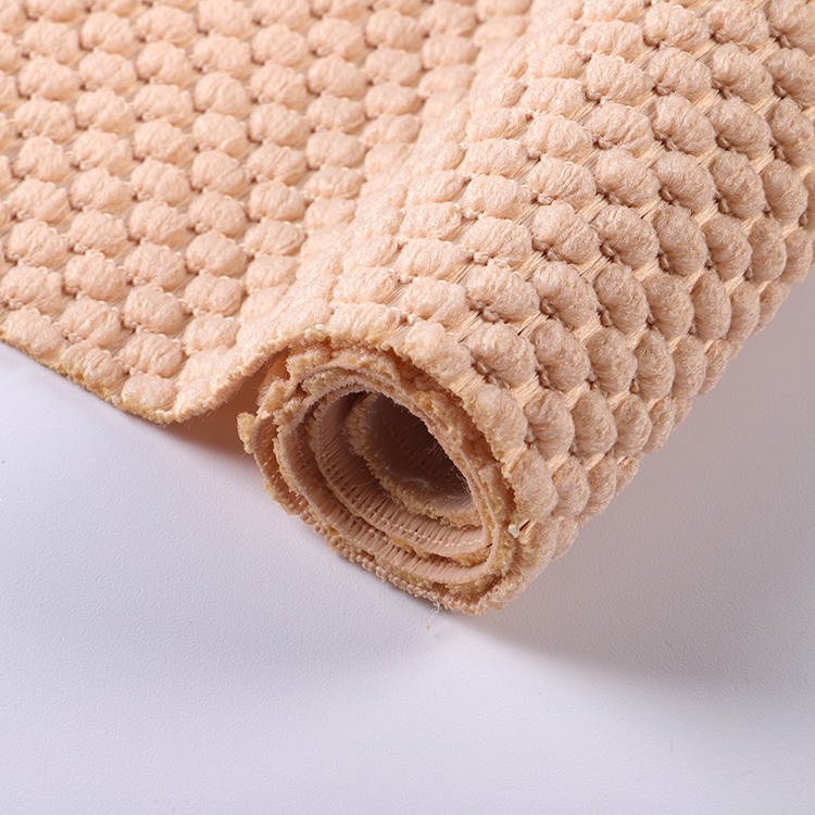 3次元のバブルファブリックを際立たせるのは、独特の4mmパイルの高さであり、触覚的で視覚的に顕著な3次元効果を生み出します。カーペット、ラグ、バスマットに使用されるかどうかにかかわらず、このニットファブリックは、高度な技術と細心の職人技へのコミットメントを示しています。その堅実な色の色は、永続的な活気を提供し、目の肥えたブランドや消費者の両方の美的要求に応えます。