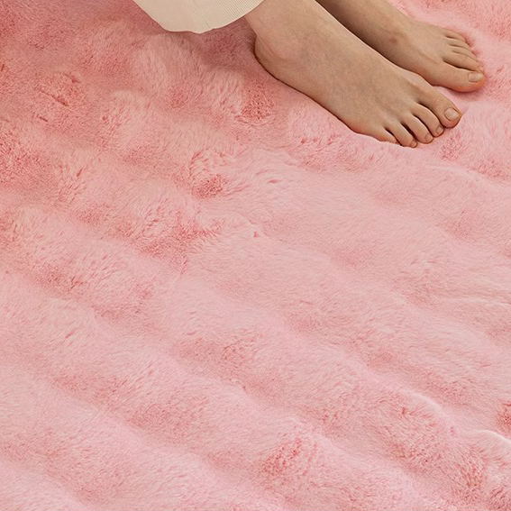 バブルフェイクウサギの毛皮のカーペットは、滑り止めドットを備えた非織物の布地を備えており、屋内の表面に安全に留まるようにします。これにより、寝室、リビングルーム、子供の部屋などの交通量の多いエリアに理想的な選択肢があります。